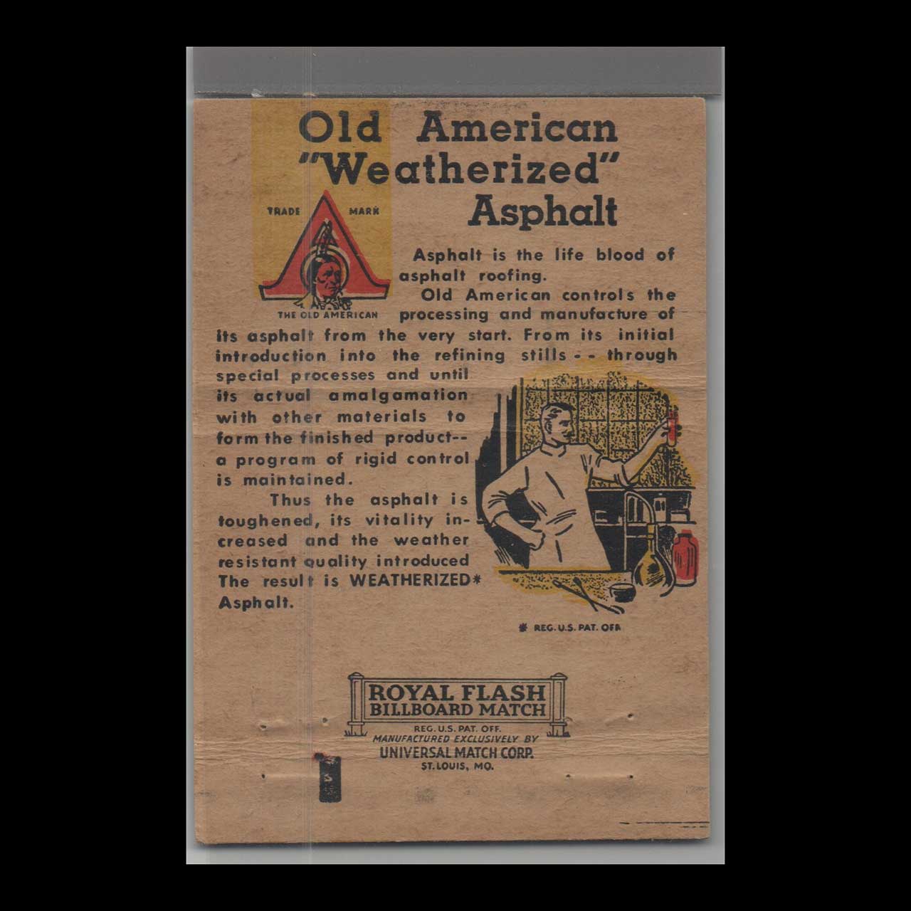Discover Royal Flash Old American Asphalt Roof Corp., specialists in durable, weatherized roofing solutions. A classic ephemera relic cherished by vintage Americana collectors.