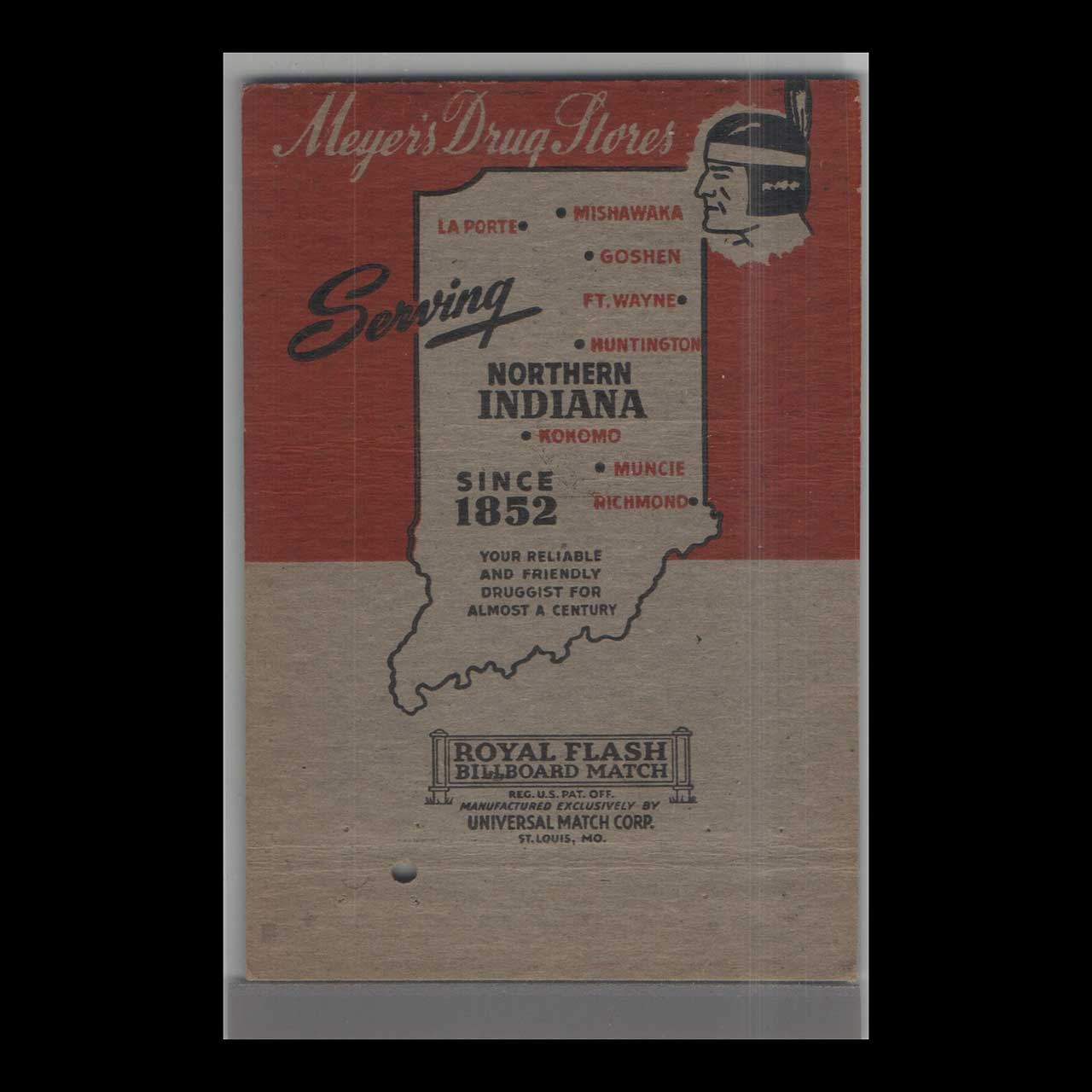 Discover the Royal Flash, a historic establishment in Old Fort Wayne, Indiana, known for its timeless charm. A nostalgic piece of Americana for vintage matchbook collectors.