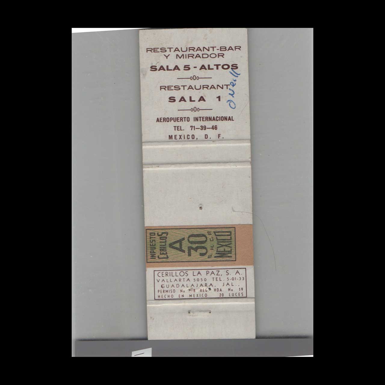 Royalty Mexico Aeropuerto Matchbook Cover