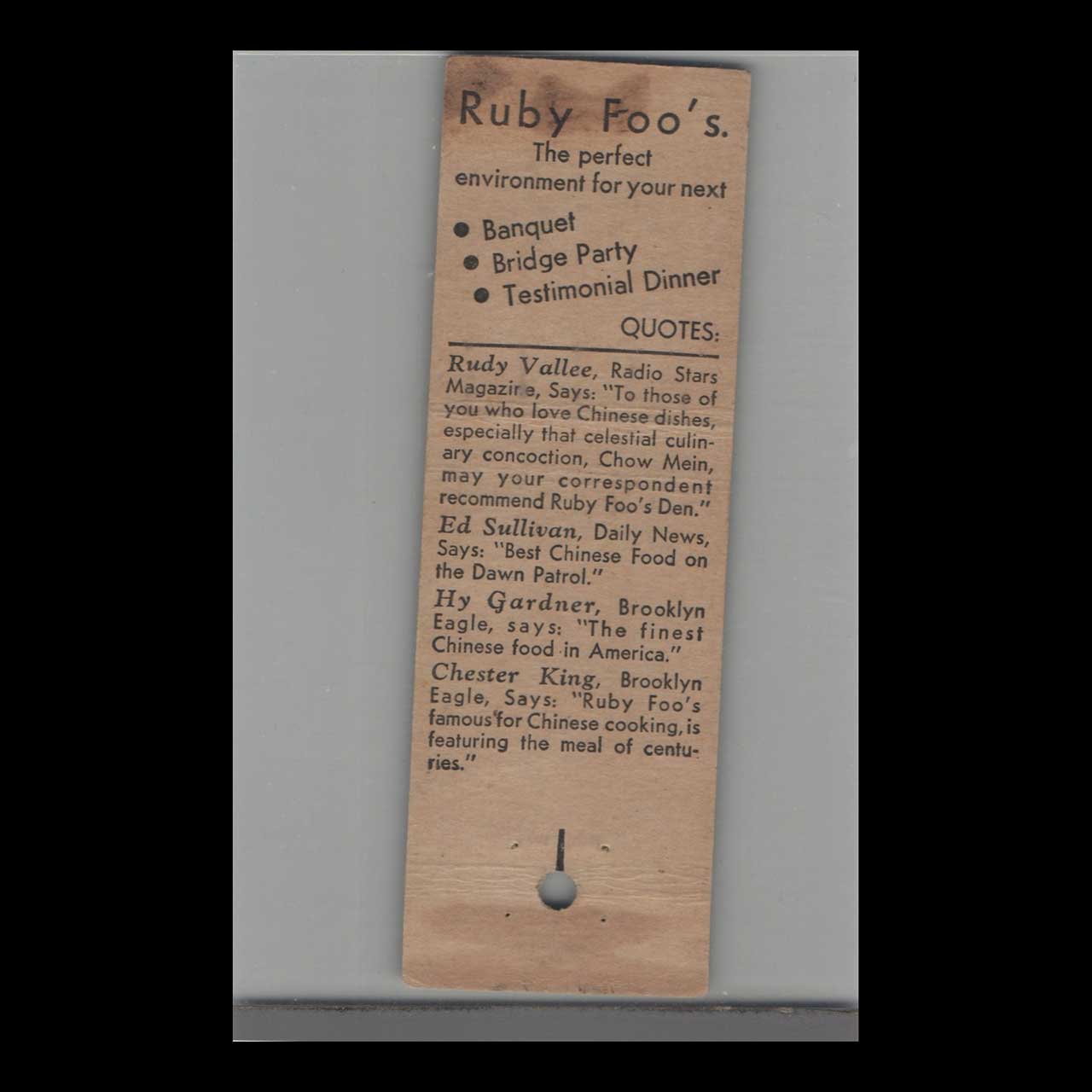 Ruby Foo Invites You To The Den Matchbook Cover NYC