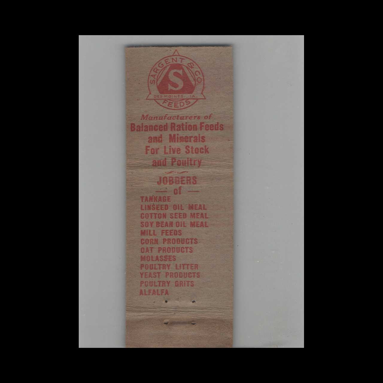 Sargent & Co Feeds Matchbook Cover Des Moines IA