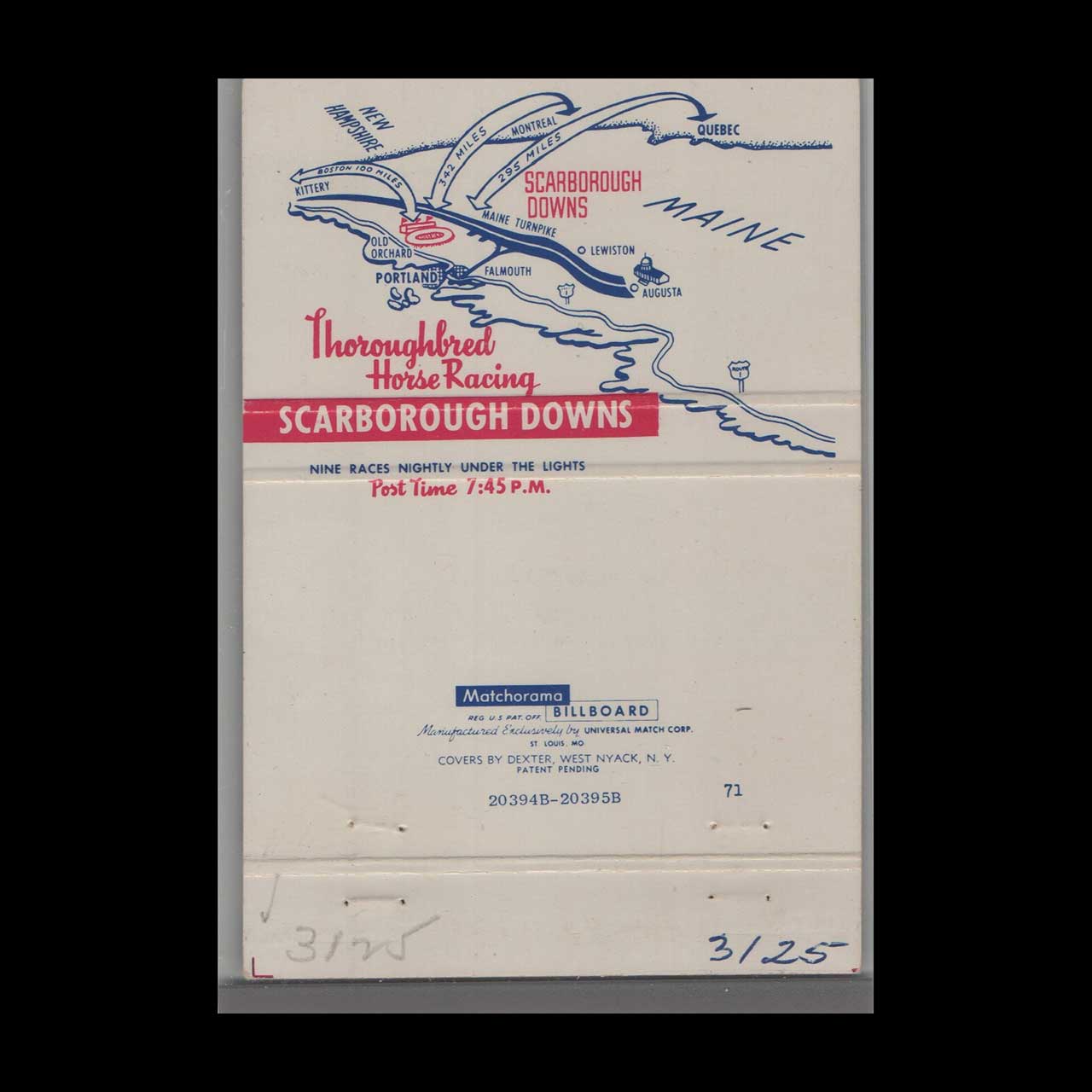 Scarborough Downs Matchbook Cover Scarborough ME