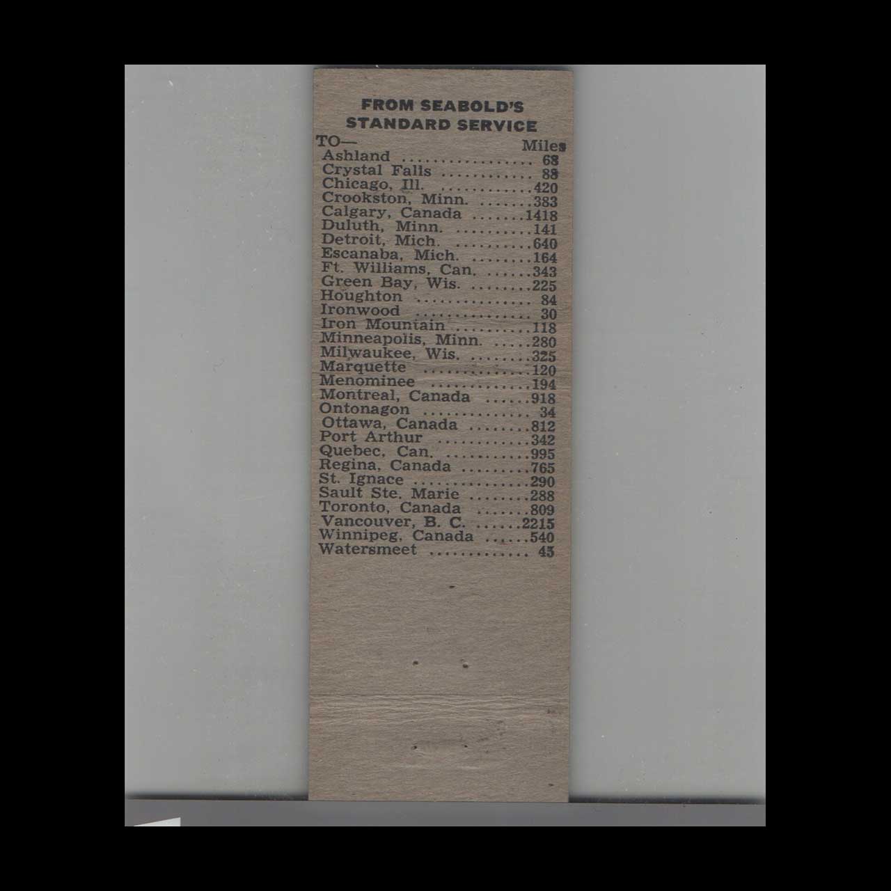 Seabold Service & Supply Merriweather MI Matchbook Cover