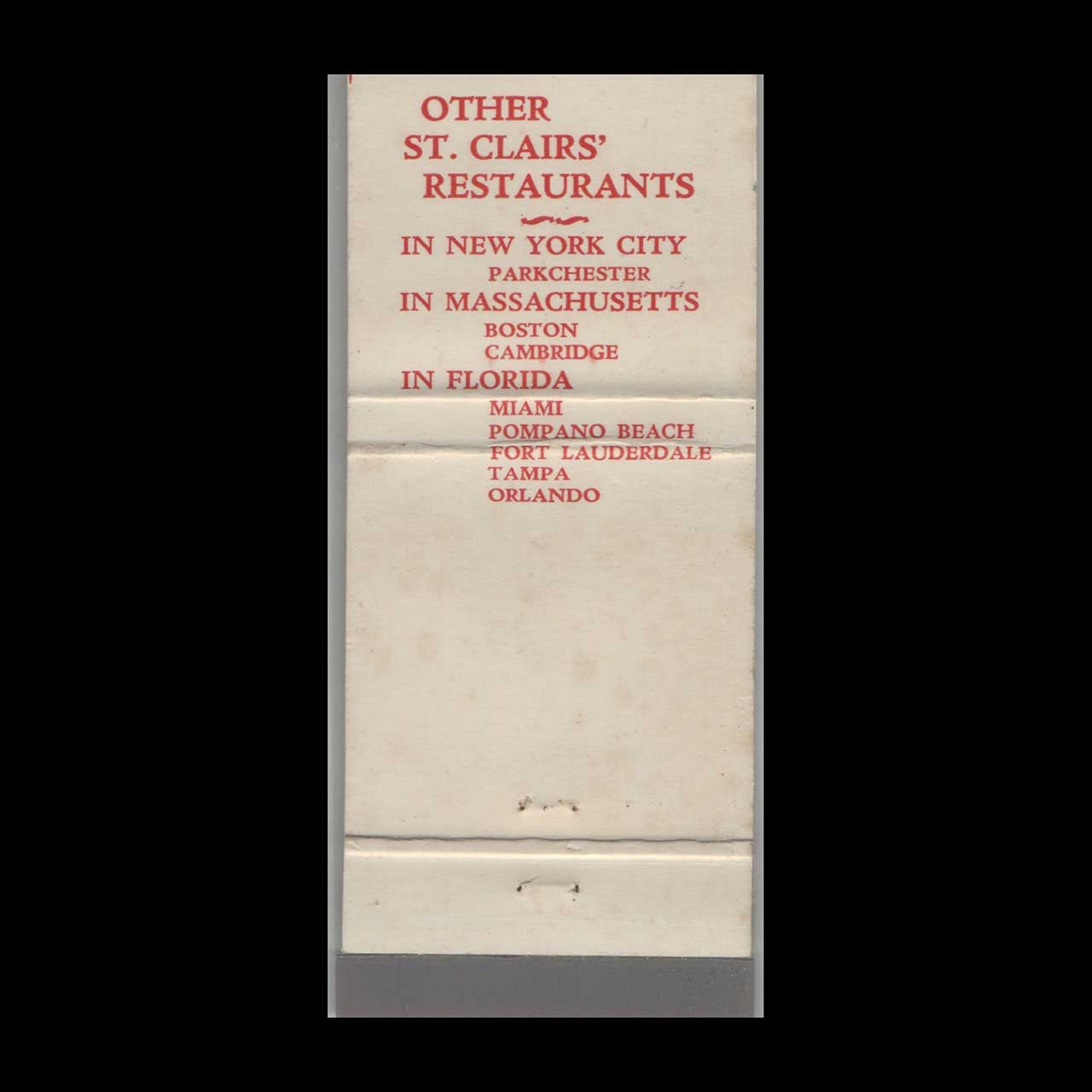 St. Clair’s Colonial Restaurant Matchbook Cover Pompano Beach
