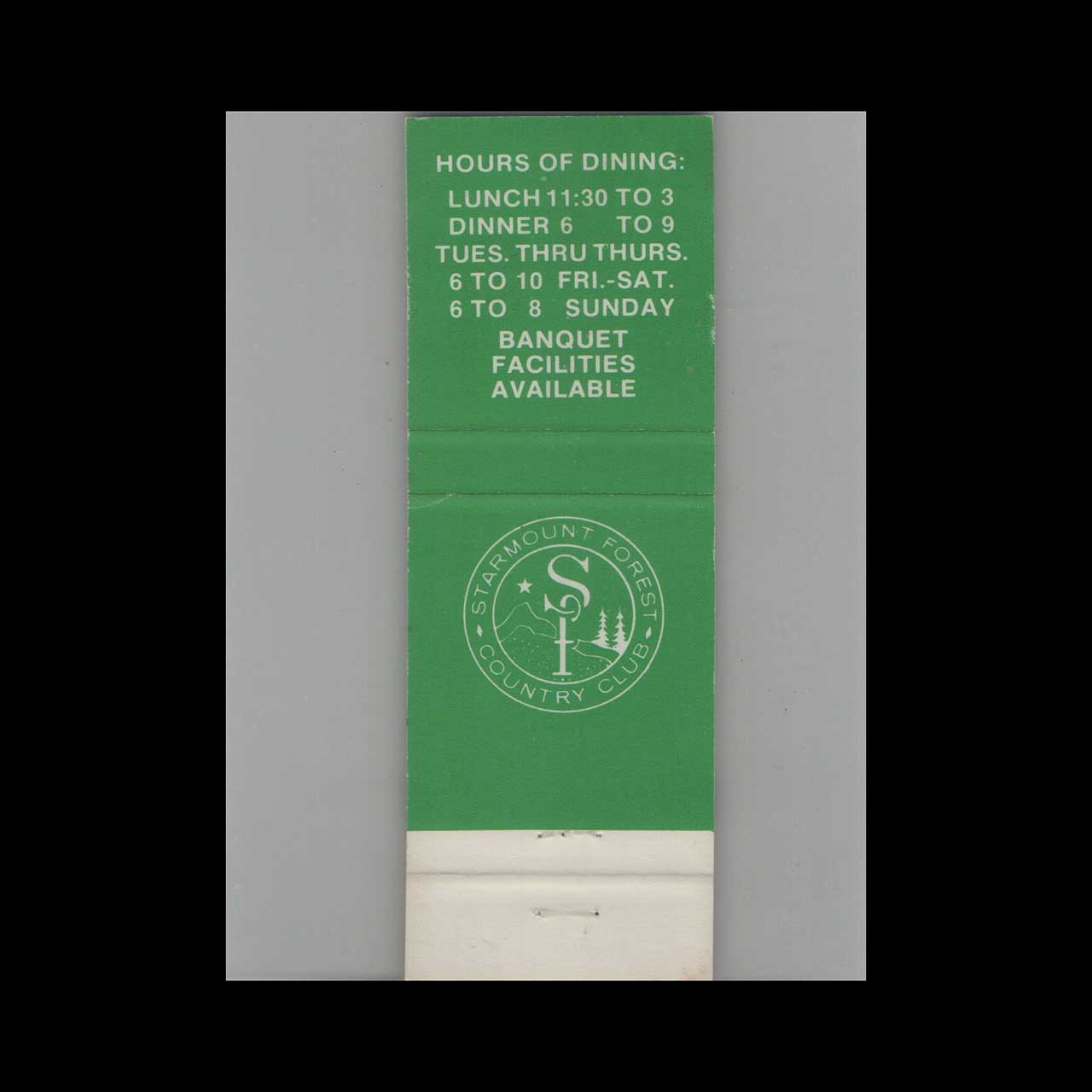 Starmount Forest Country Club in Greensboro, NC, offers an elegant setting for golf and social gatherings. This vintage matchbook is a nostalgic piece of Americana for collectors.