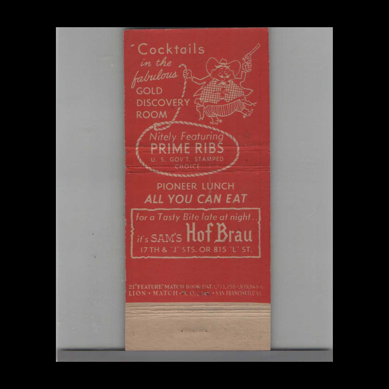 Stripped Feature Ranch Wagon Dinner Sacramento Matchbook Cover