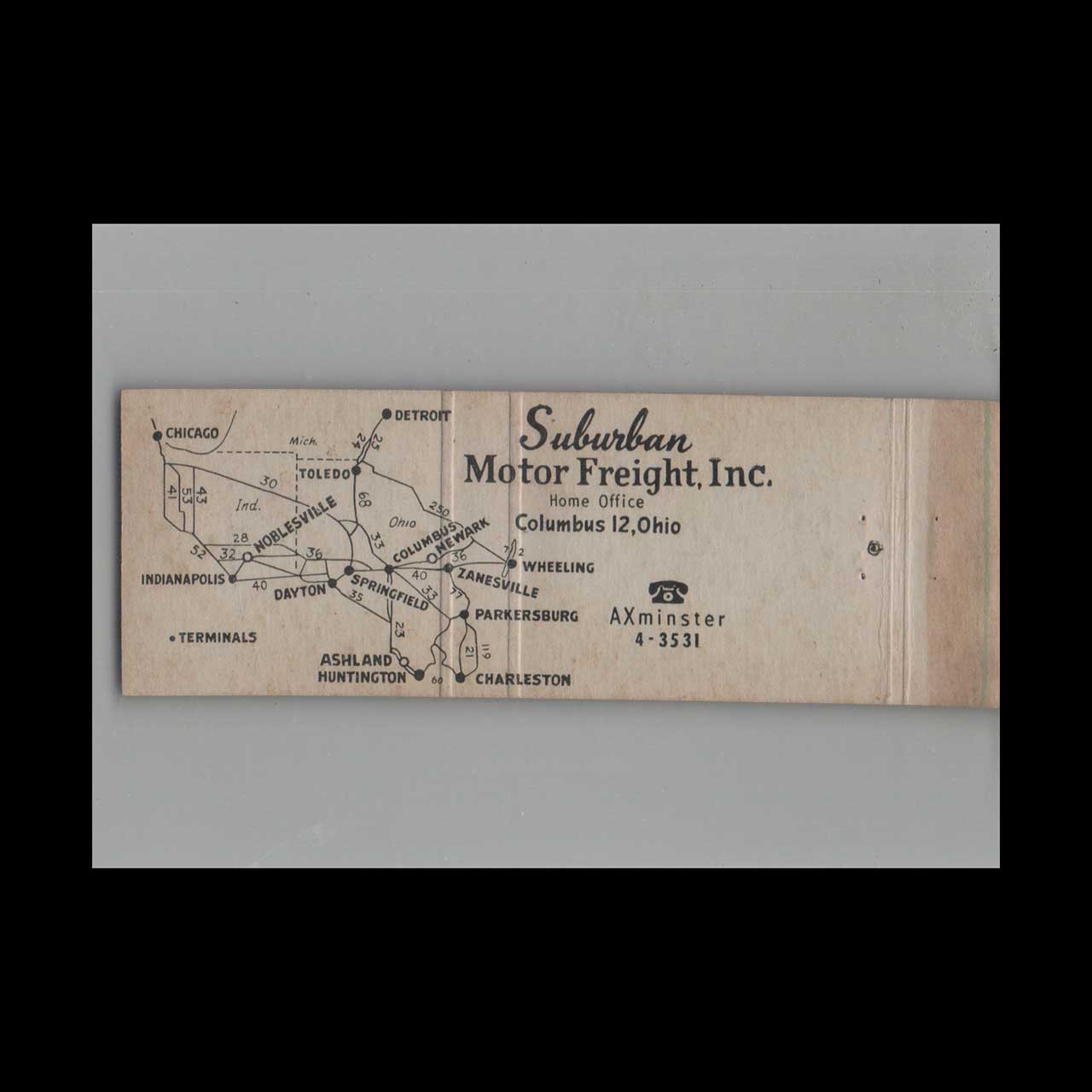 Suburban Motor Freight Inc. Matchbook Cover Columbus OH