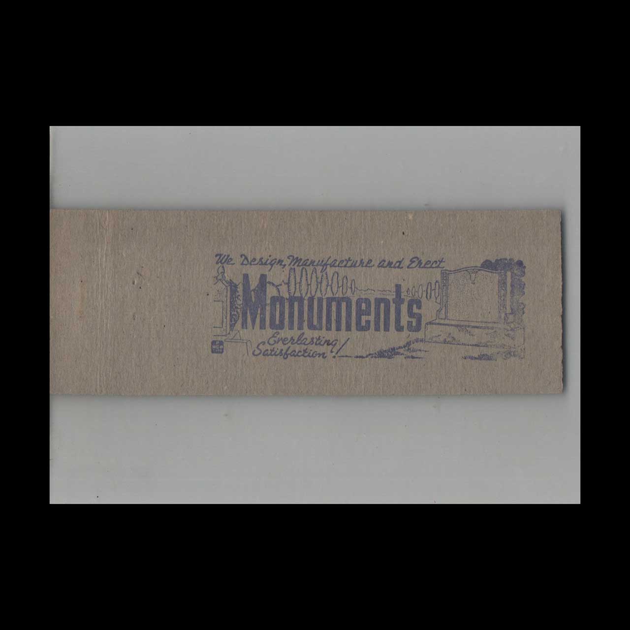 T. F. Kirby offers a complete line of monuments in Clinton, MA, showcasing skilled craftsmanship and timeless memorial art. A classic ephemera relic cherished by vintage matchbook collectors and Americana enthusiasts.