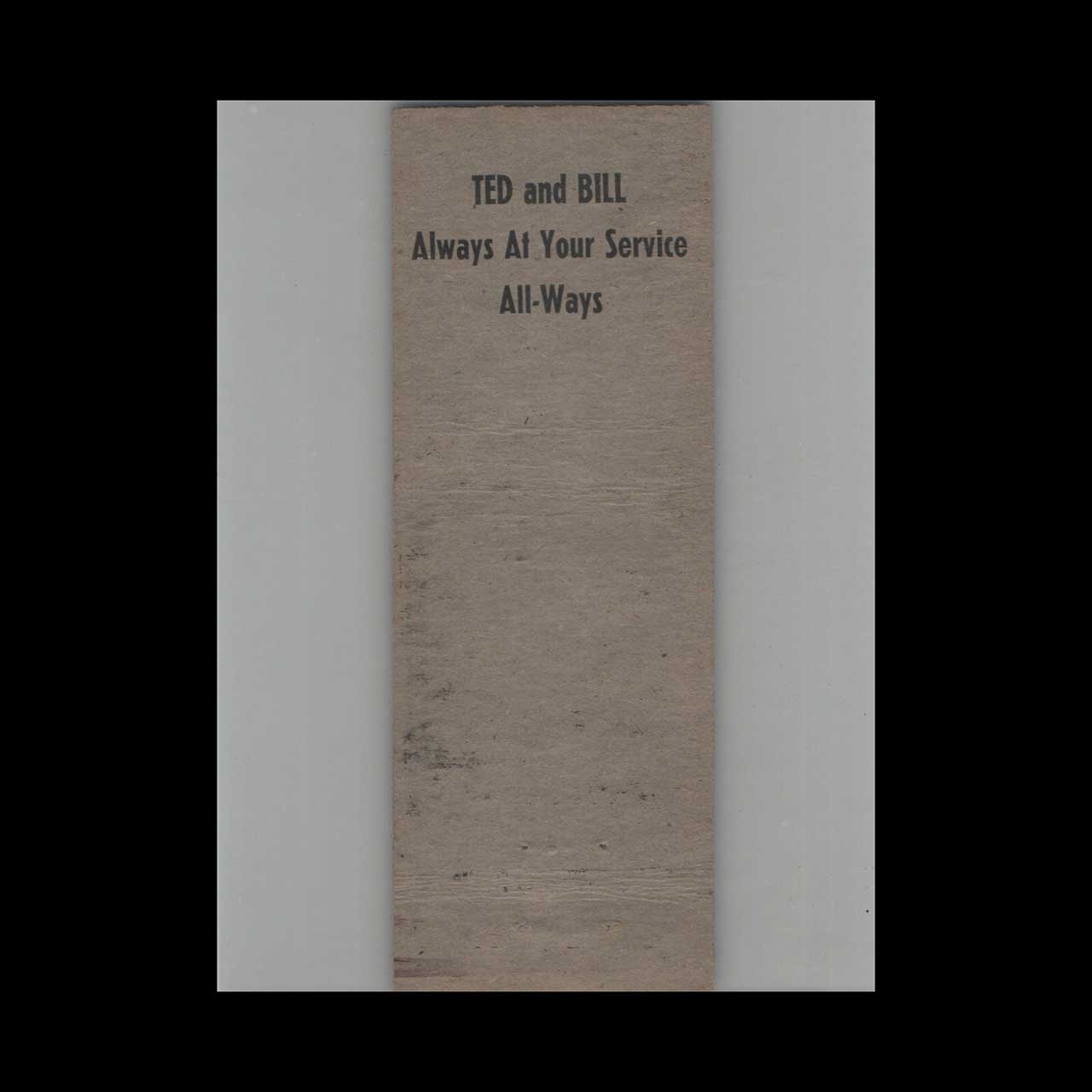 Ted’s Texaco Service Center in Plymouth, NH, offered trusted automotive care with a hometown touch. This vintage Advance Match Co. cover is a nostalgic piece of Americana for collectors.