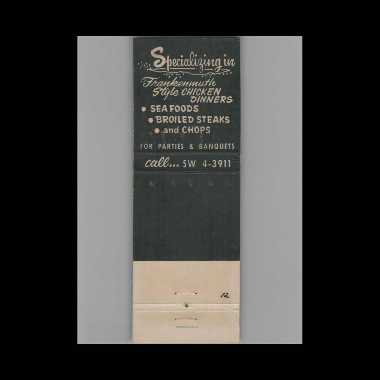 The Algonac Inn in Algonac, MI, offered a charming lakeside retreat with classic Midwestern hospitality. This vintage matchbook cover is a nostalgic piece of Americana for collectors.