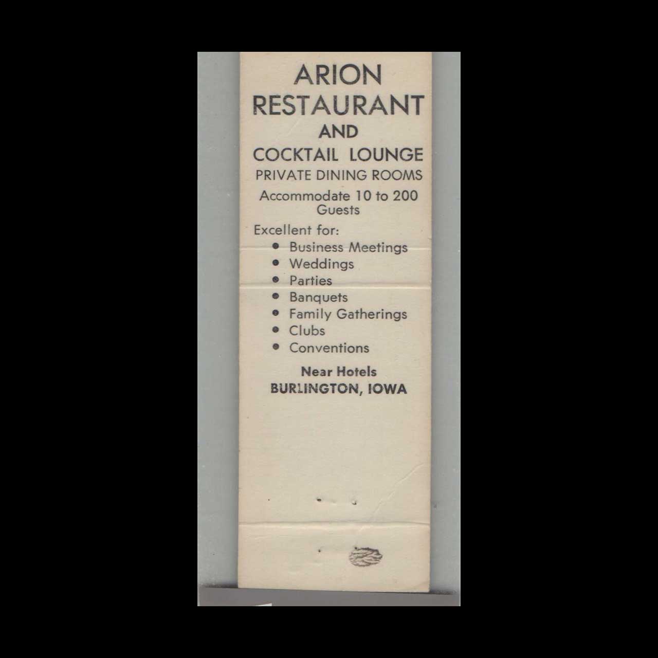 The Arion Pizza Place Matchbook Cover Burlington IA