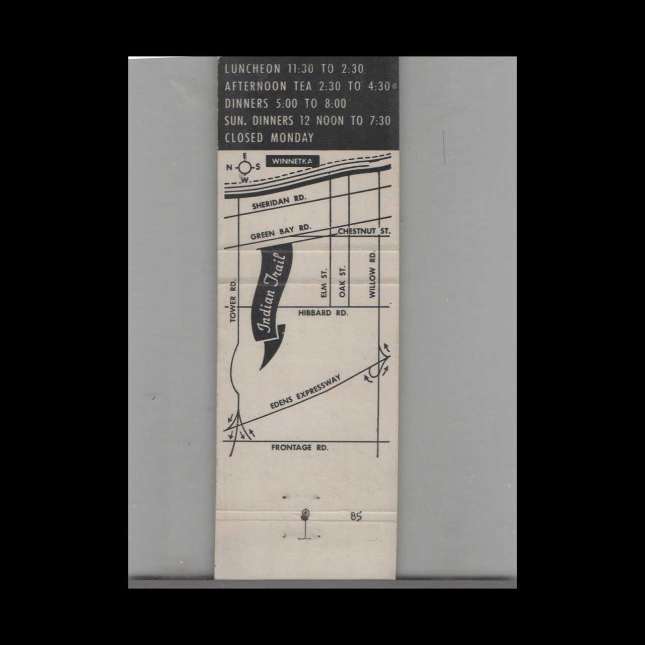 The Indian Trail Restaurant Winnetka Matchbook Cover