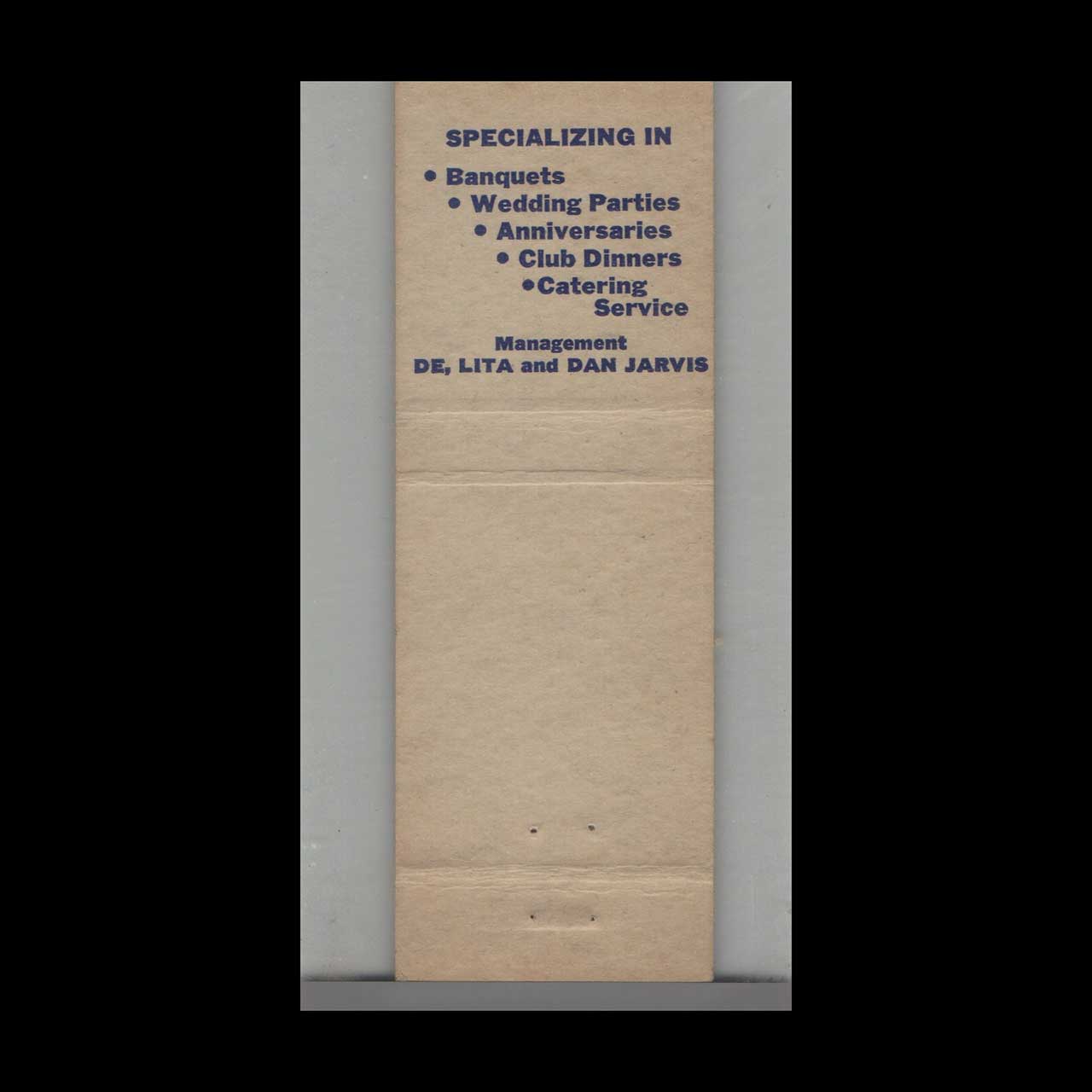 The Olde Board Restaurant in Burlington, VT, offered classic New England dining in a charming historic setting. This vintage matchbook is a nostalgic piece of Americana for collectors.