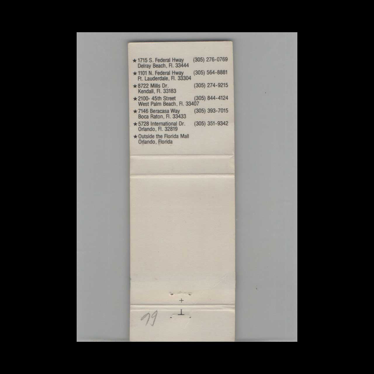 The Original Pancake House in Delray Beach, FL, is renowned for its classic breakfast fare and warm ambiance. This vintage matchbook cover is a nostalgic piece of Americana for collectors.
