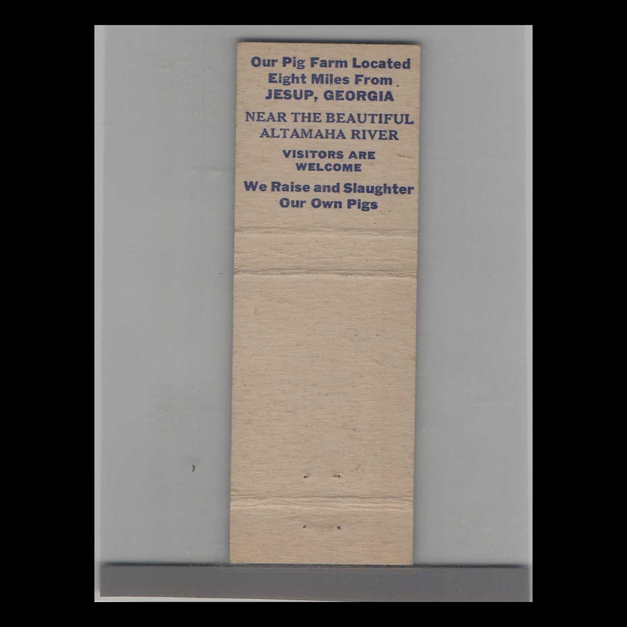 The Pig Hickory Smoked Hams Jesup GA Matchbook Cover