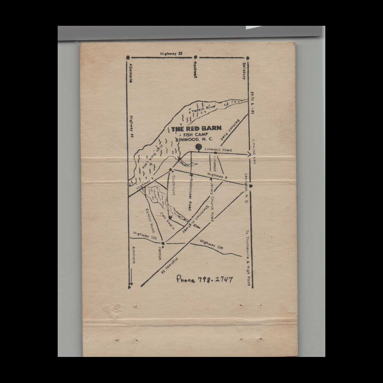 The Red Barn Fish Camp Linwood NC Matchbook Cover