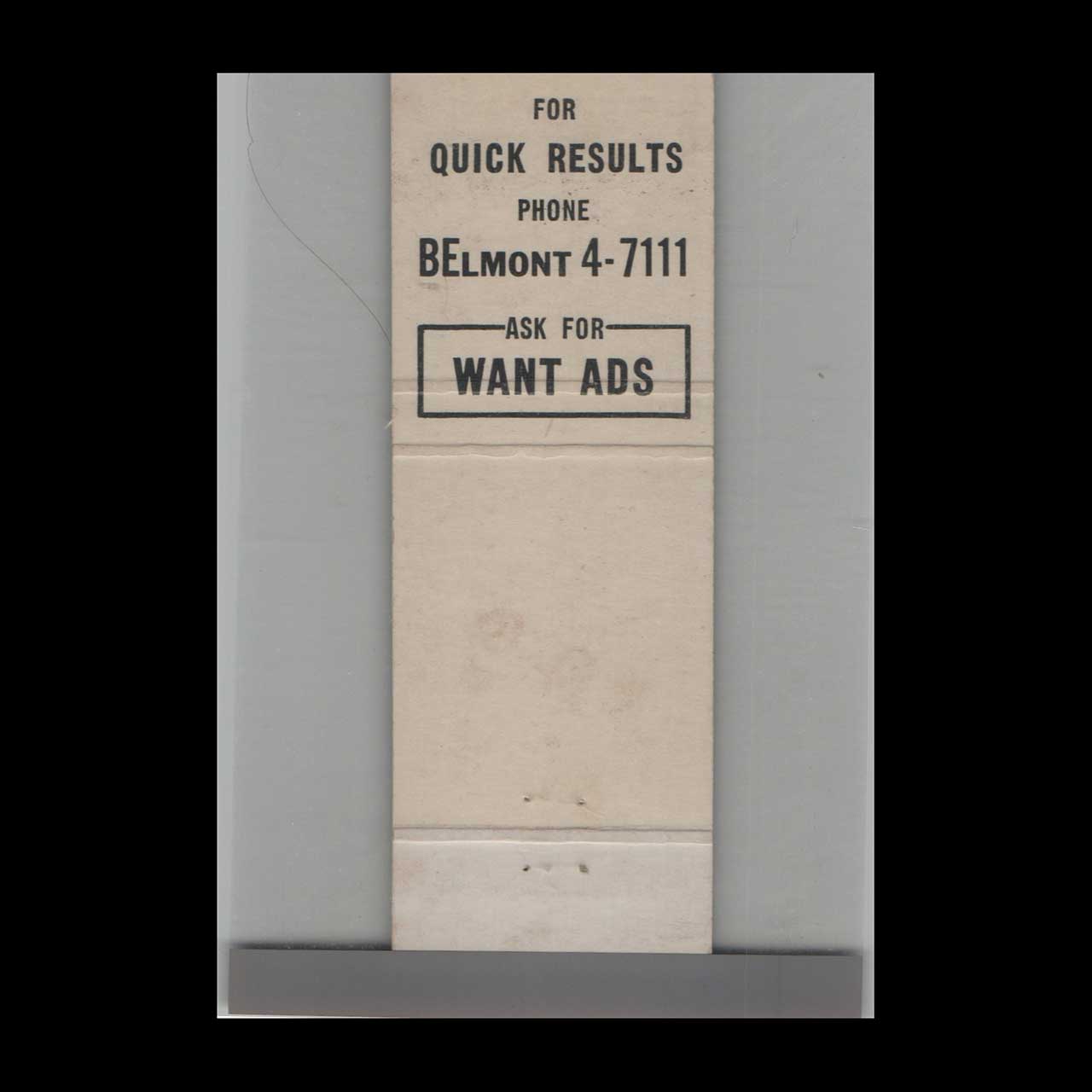 The San Diego Union & Evening Tribune Want-Ads matchbook showcases a historic newspaper’s classified section. A nostalgic piece of Americana for vintage matchbook collectors.