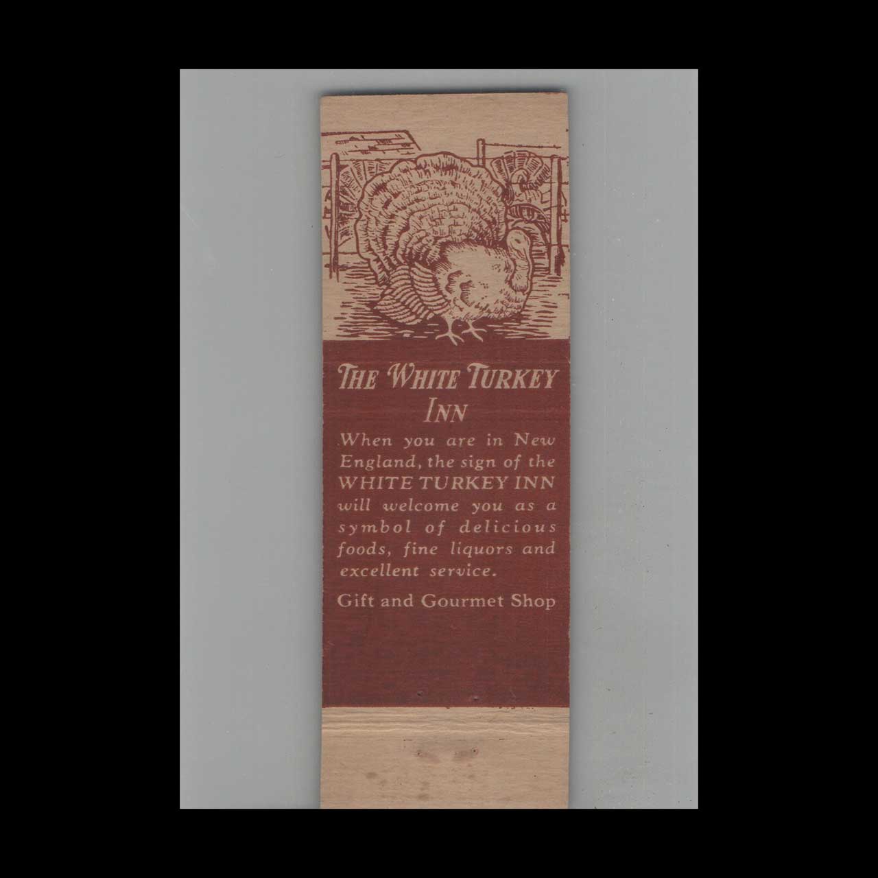 <h3>About this Vintage Matchbook</h3> <p>The White Turkey Inn in Danbury, CT, was a beloved local dining spot known for its warm hospitality and classic American fare. This vintage matchbook cover is a nostalgic piece of Americana for collectors and enthusiasts of classic ephemera.</p> <p><strong>Brand:</strong> Matchbook Cover The White Turkey Inn Danbury CT</p> <p><strong>Category:</strong> Vintage Americana Memorabilia</p>