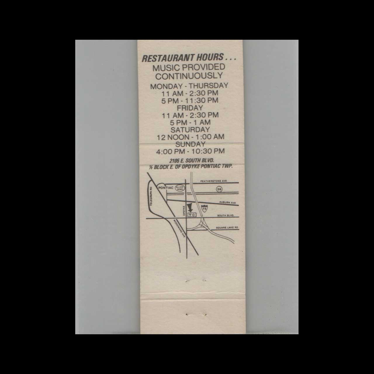 Discover Theater Organ Pizza & Pipes in Pontiac, MI, a unique blend of dining and musical heritage. A nostalgic piece of Americana for vintage matchbook collectors.