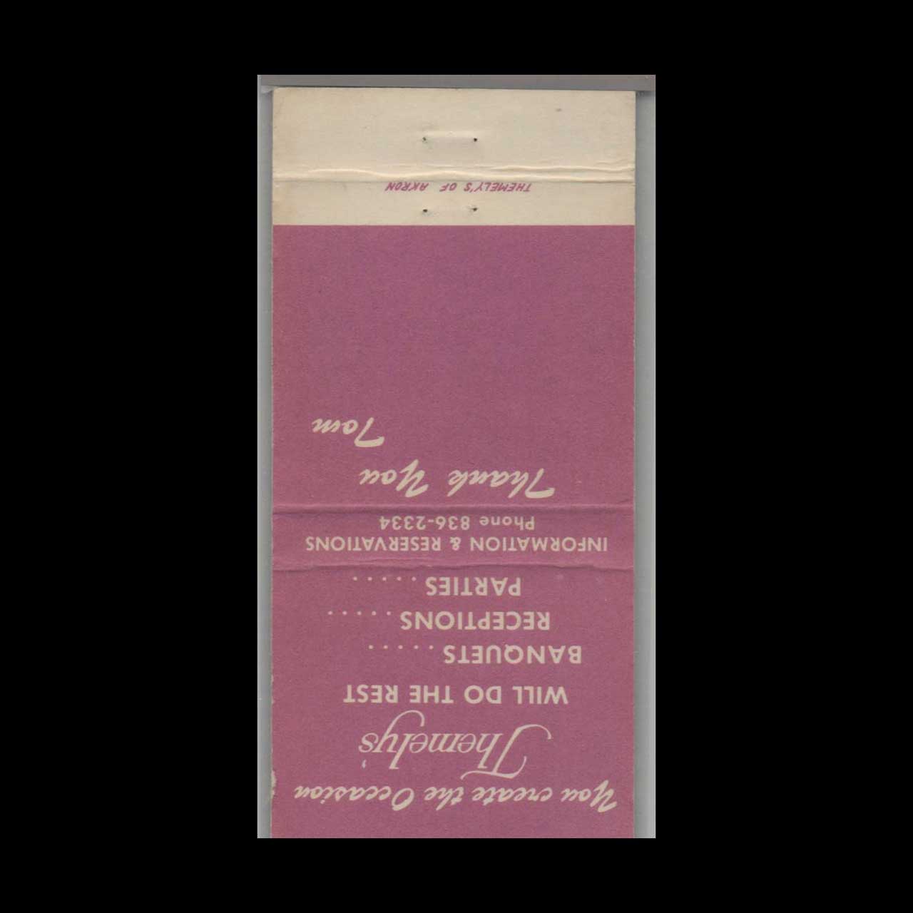 Themely’s Restaurant Akron Ohio Matchbook Cover