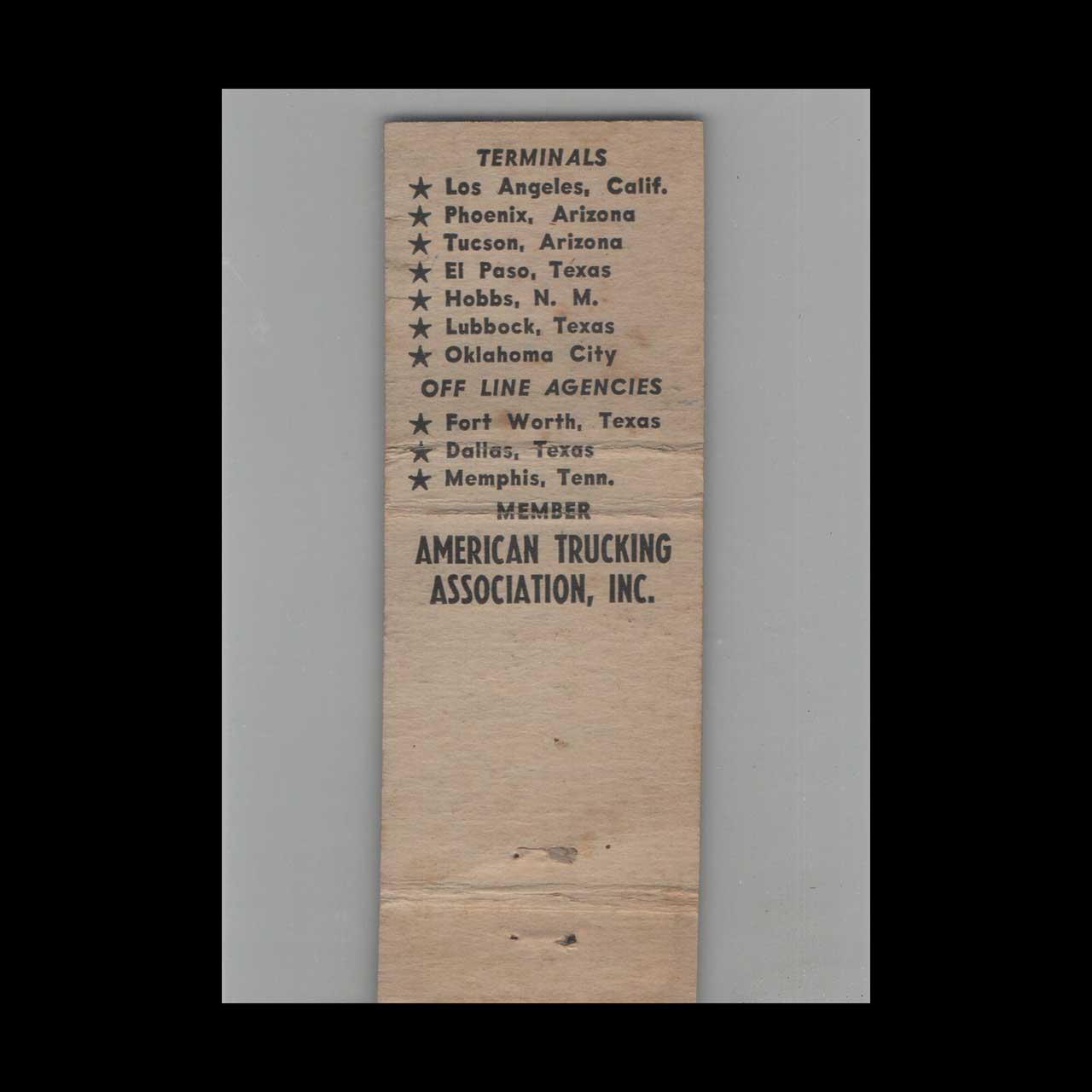Time Dependable Motor Freight Matchbook Cover Los Angeles