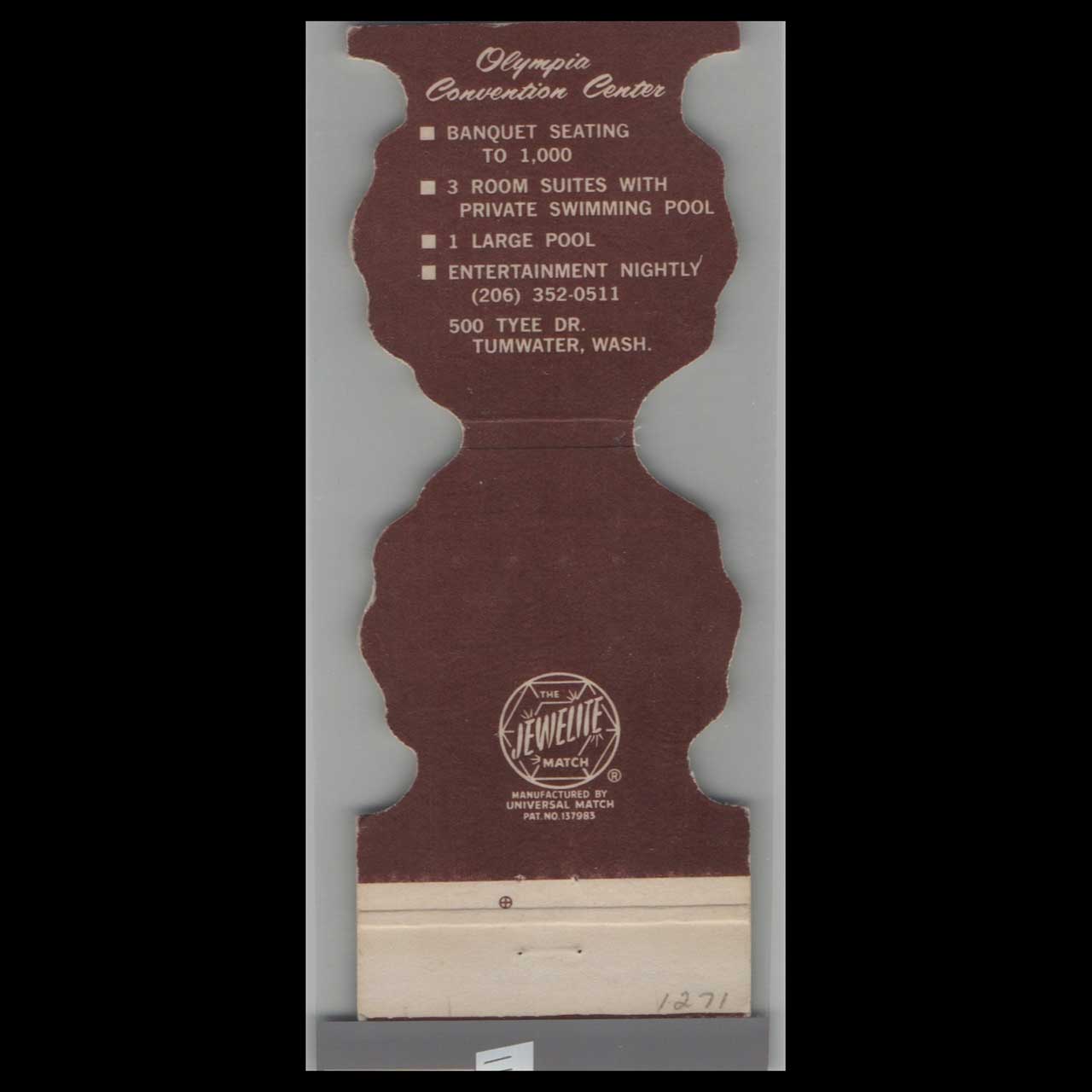 Tom Tom Room Matchbook Cover, Tumwater WA