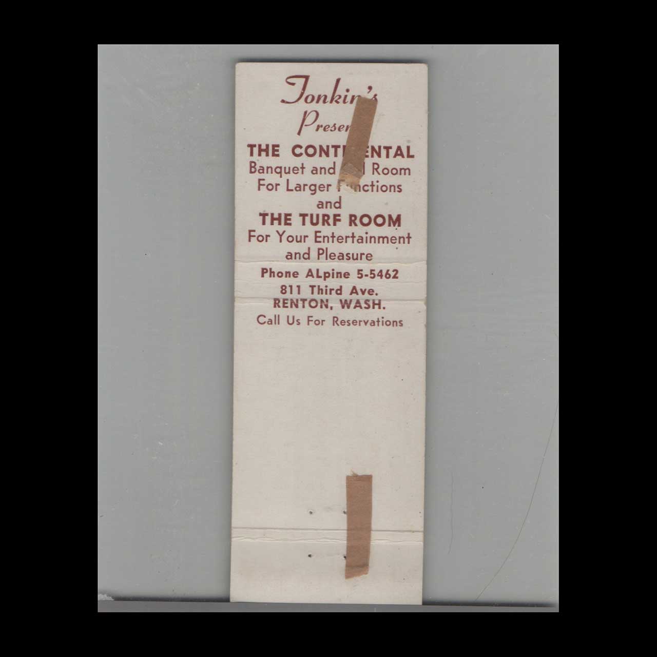 Tonkin’s Buffet-Broiler Matchbook Cover Renton WA