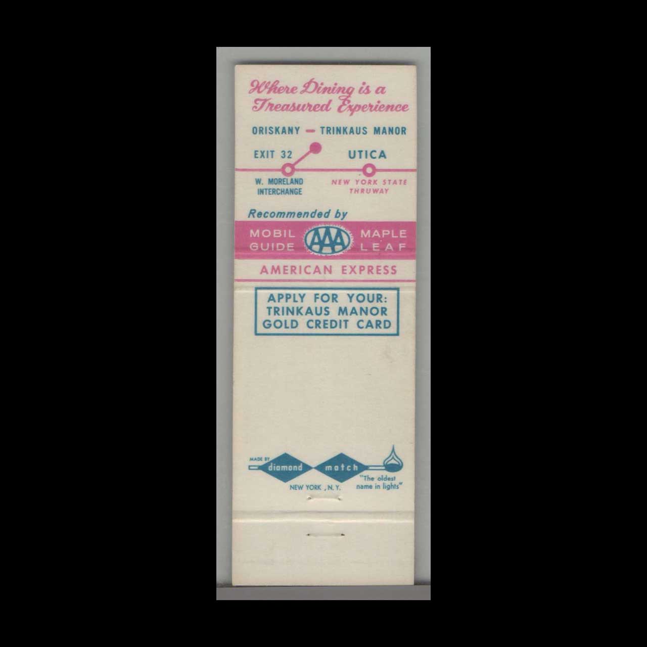 Trinkhaus Manor Restaurant in Rome, NY, offered elegant dining in a historic setting. This Matchorama matchbook is a classic ephemera relic for Americana collectors.