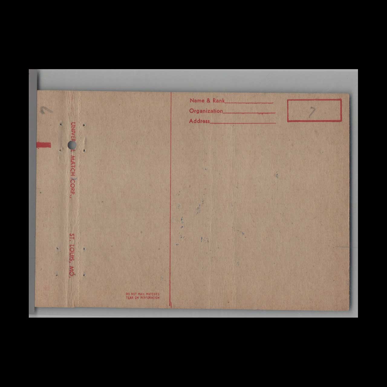 <h3>About this Vintage Matchbook</h3> <p>Vintage matchbook from the US Army National School of Aeronautics in Kansas City, Missouri, showcasing military aviation heritage. A nostalgic piece of Americana for collectors and enthusiasts of classic ephemera.</p> <p><strong>Brand:</strong> Matchbook Cover Post Card – US Army National School Of Aeronautics KC Missouri</p> <p><strong>Category:</strong> Vintage Americana Memorabilia</p>