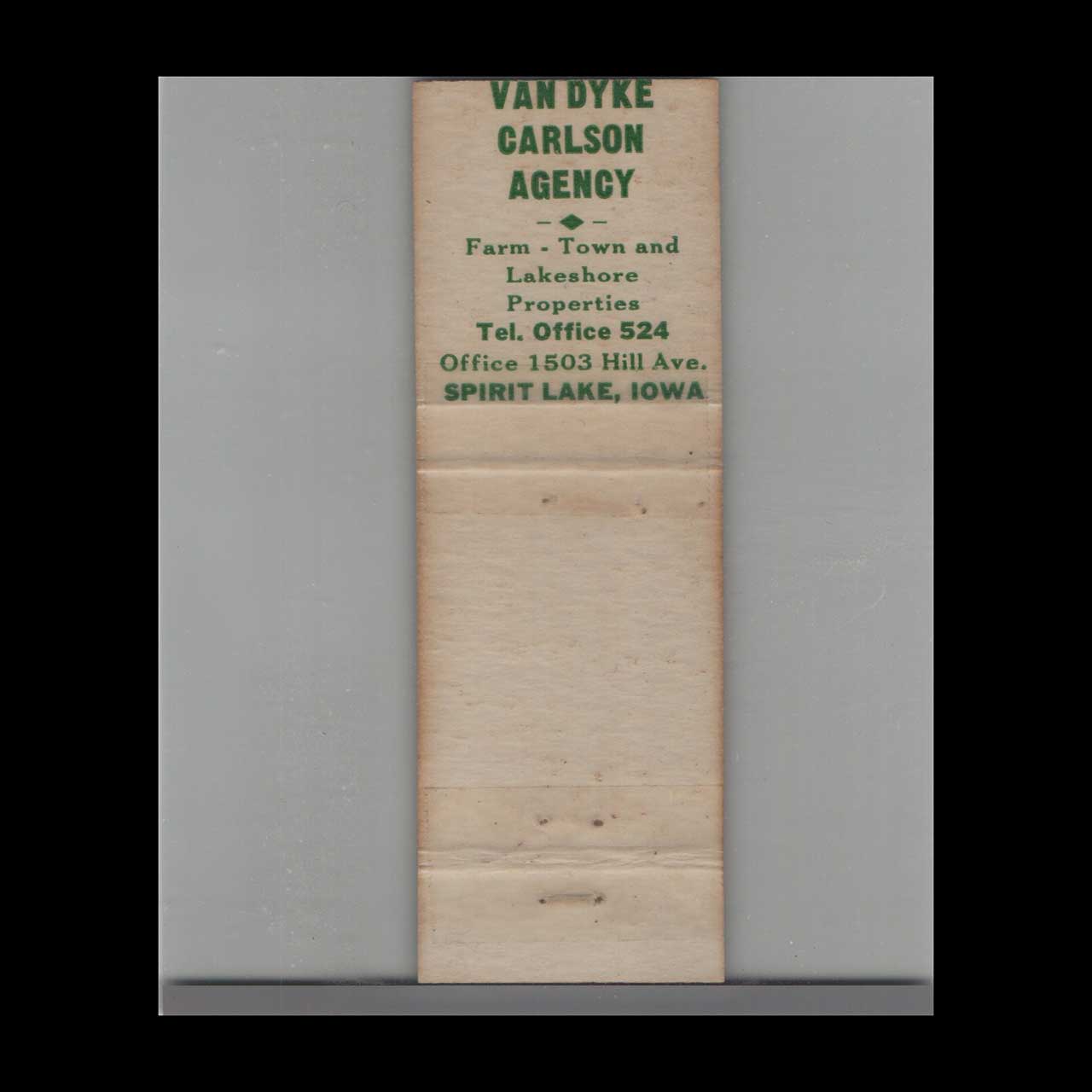 Van Dyke Carlson Real Estate Matchbook Cover Spirit Lake IA