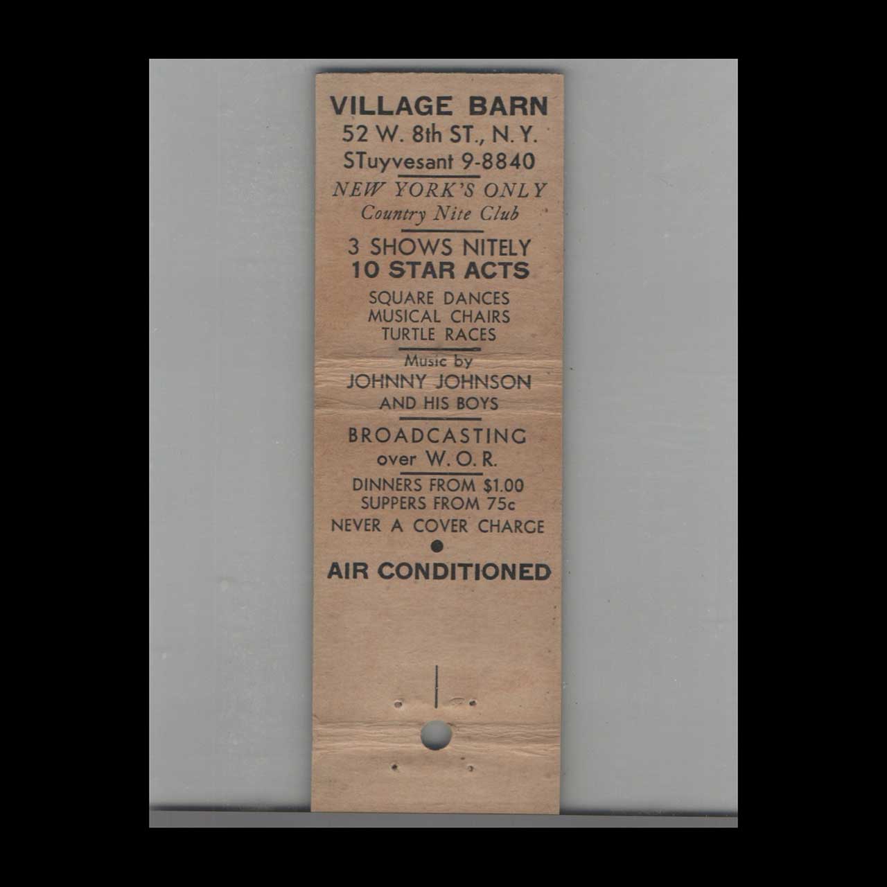 Village Barn Restaurant Matchbook Cover Greenwich Village NY