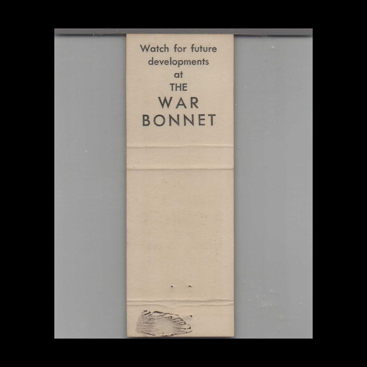 Discover the War Bonnet in Keshena, WI, a historic local establishment with deep cultural roots. This pink matchbook is a nostalgic piece of Americana for collectors.