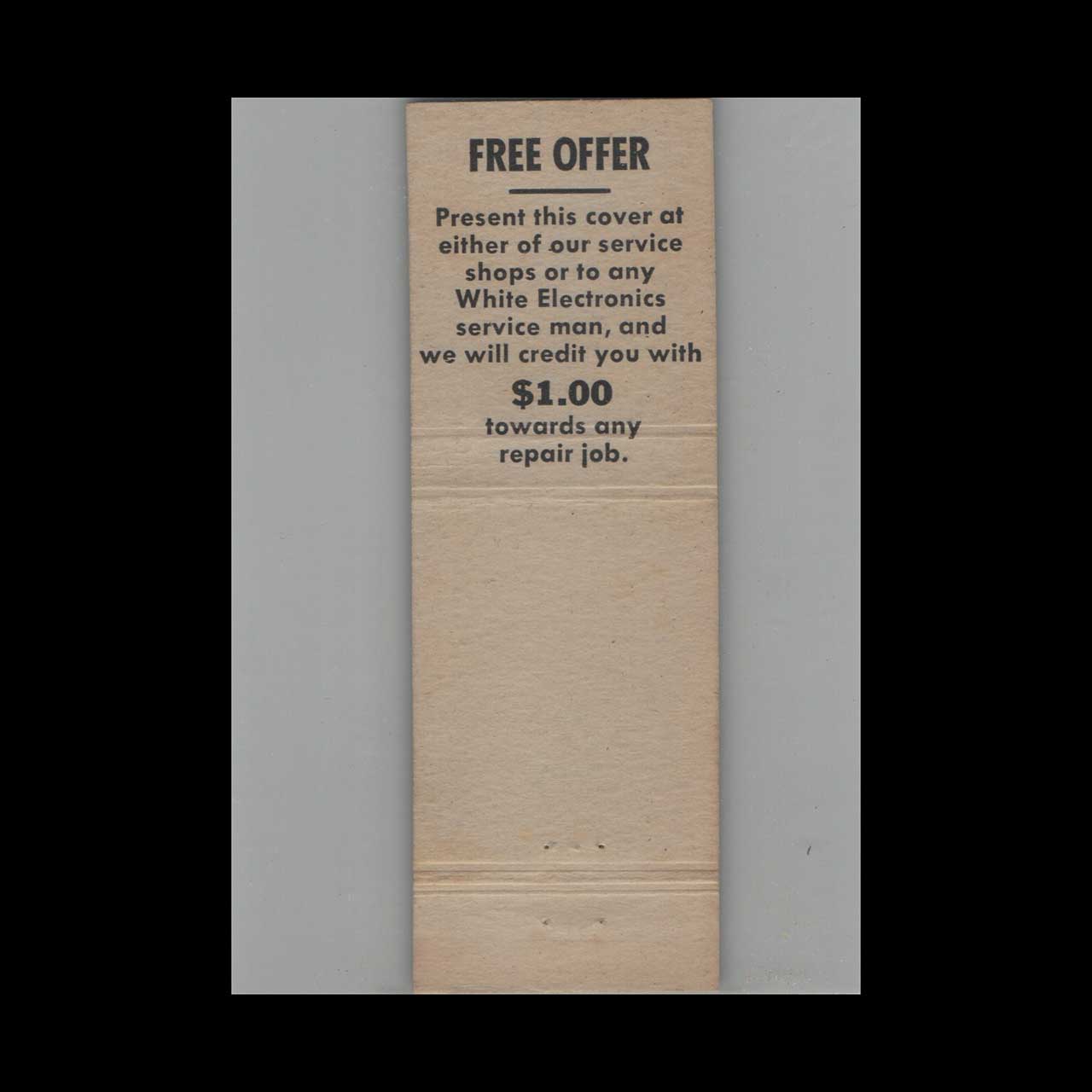 White Electronics Auto Radio Matchbook Cover Sunnyside NY