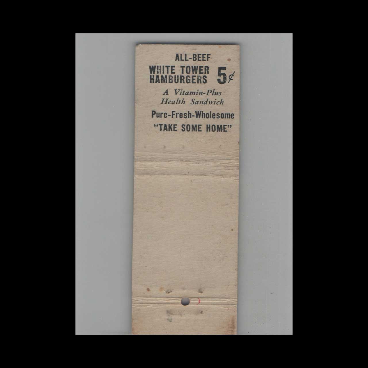 White Tower Hamburgers, a pioneering fast-food chain known for its iconic sliders and streamlined service. A nostalgic piece of Americana for collectors and vintage ephemera enthusiasts.