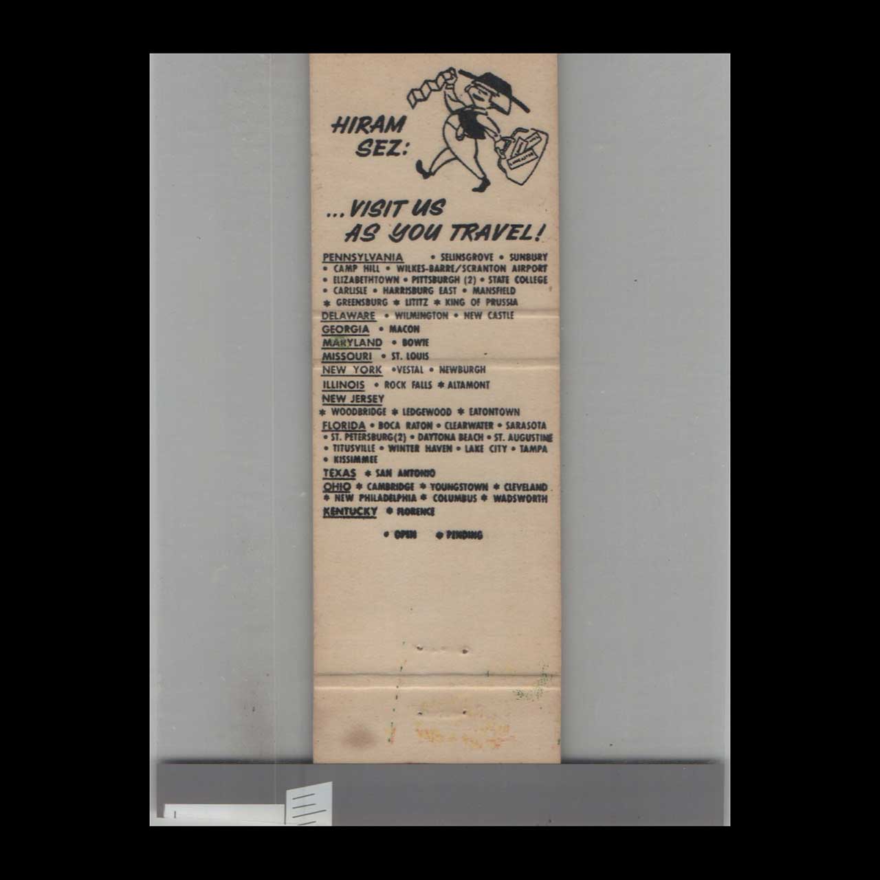 Windmill Dutch Pantry Kettle & Keg Matchbook Cover
