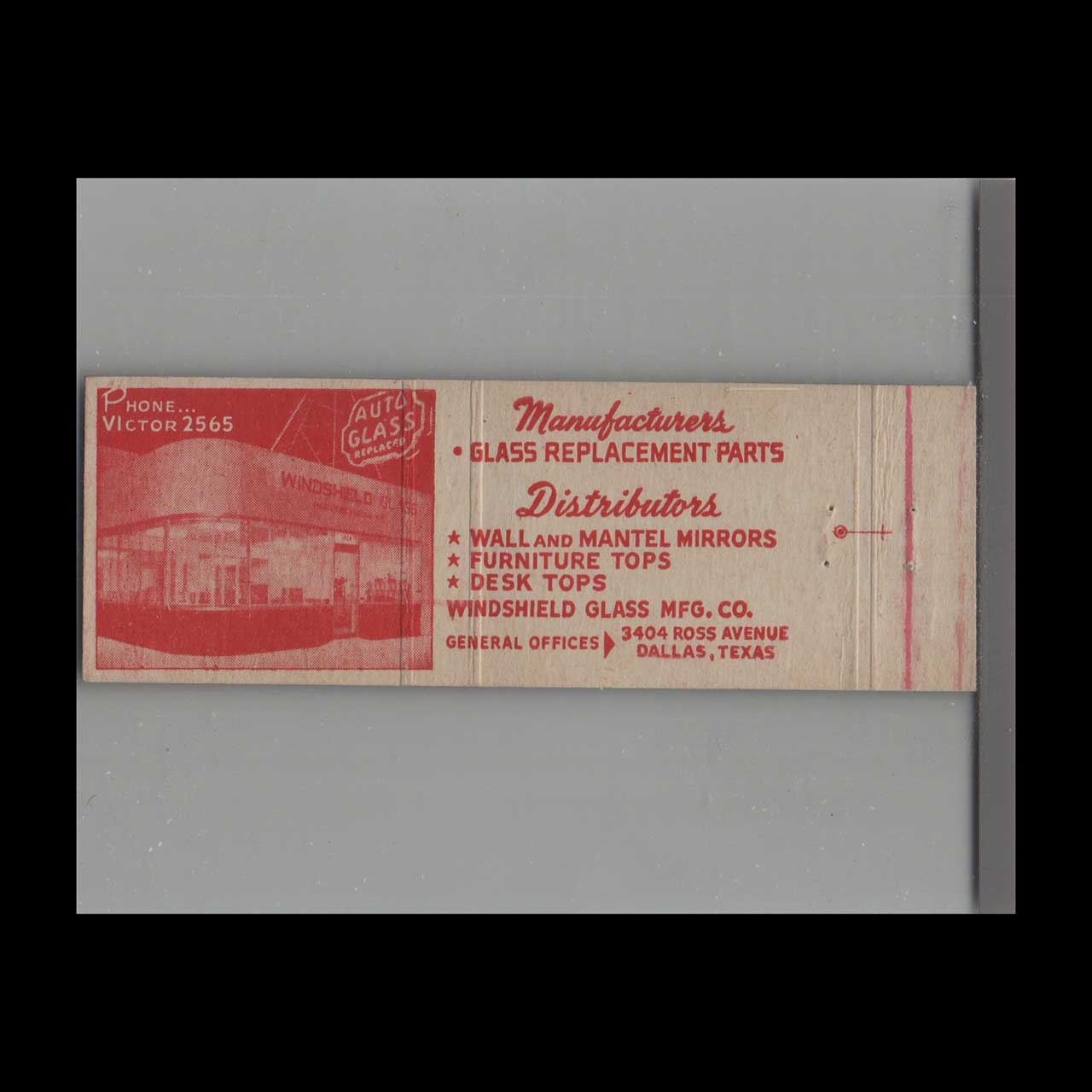 Windshield Glass Manufacturing Dallas TX Matchbook Cover