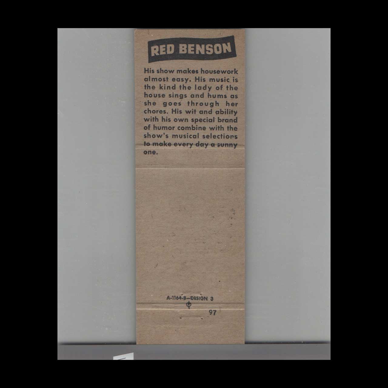 WPEN AM 950 Radio Station Matchbook Cover Red Benson Show