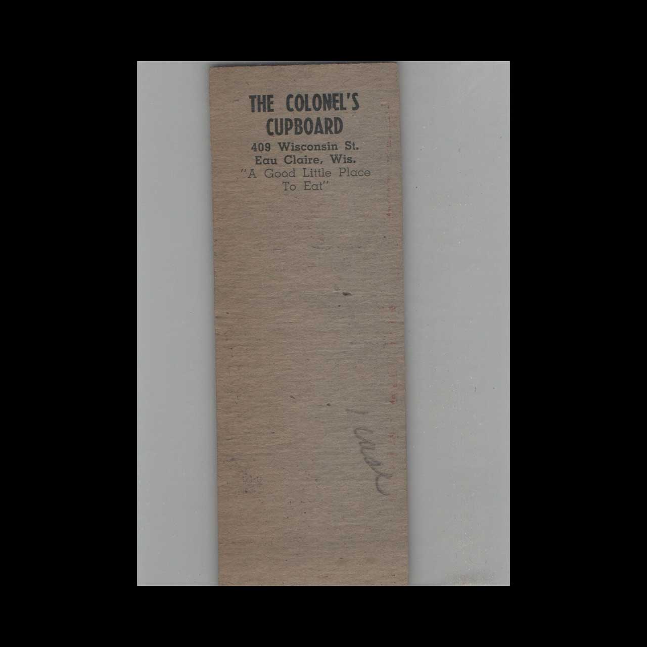WWII Era Colonel’s Cupboard Matchbook Cover Eau Claire WI