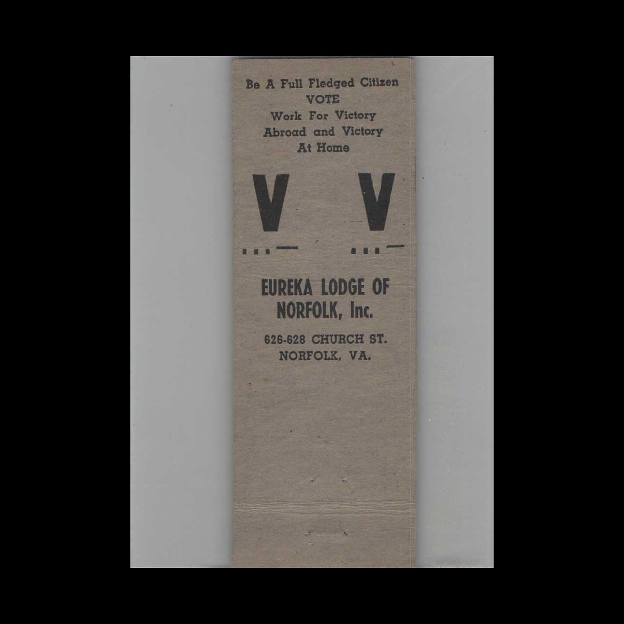 WWII Era Matchbook Cover Eureka Lodge of Norfolk VA