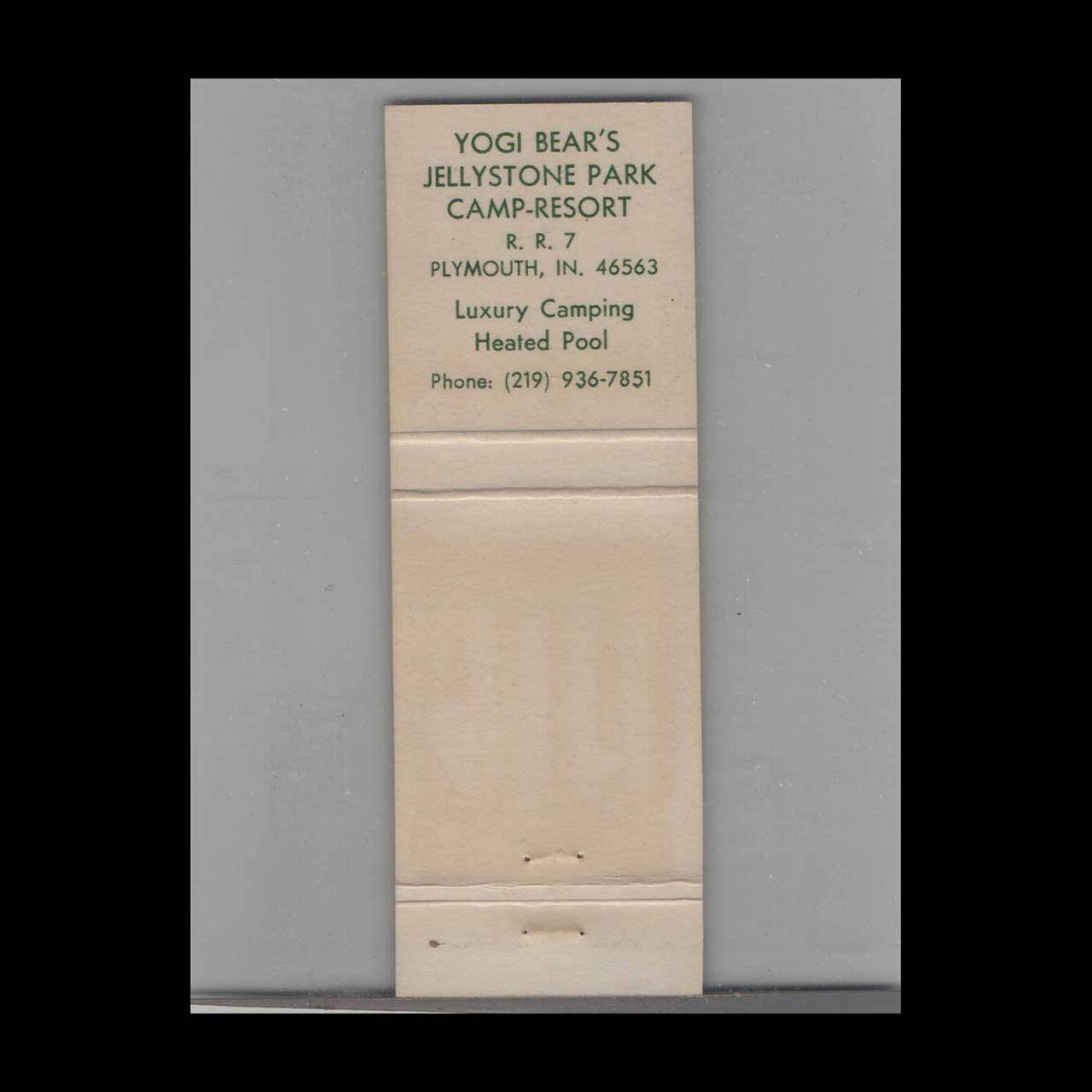 Discover Yogi Bear’s Jellystone Park Campground in Plymouth, IN, a beloved family vacation destination. This vintage matchbook is a nostalgic piece of Americana for collectors.